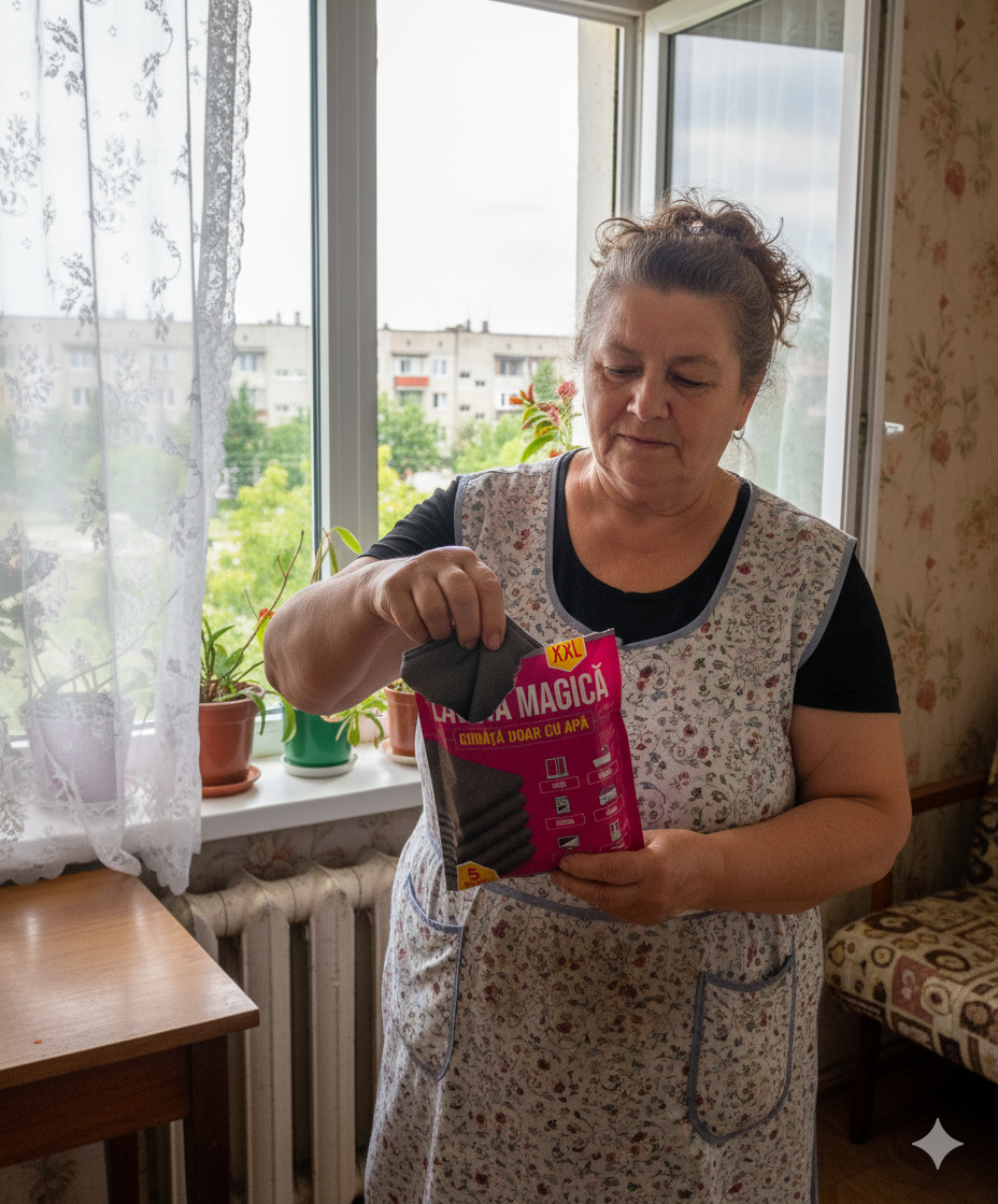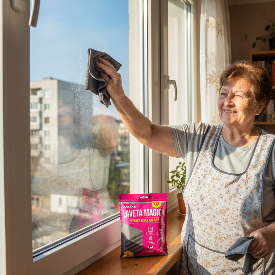 Locuiesc la bloc si ma luptam mereu cu urmele de pe geamuri si praful de pe masa. Am deschis setul de lavete si prima proba a fost pe fereastra si pervaz: sterge repede, fara dare, si se clateste usor la chiuveta. Imi place ca nu mai car sticle de chimicale. Doar apa si gata.