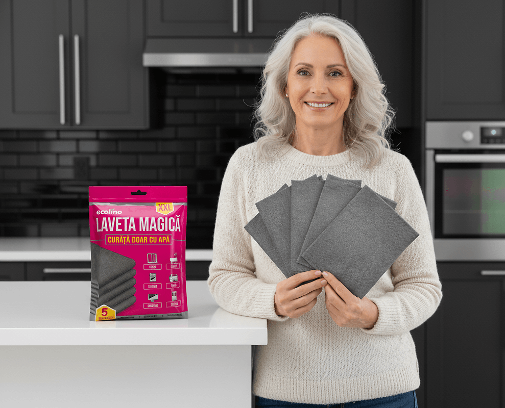 Nu mai ai nevoie de zeci de detergenți diferiți pentru fiecare suprafață. Cu Laveta Magică Ecolino economisești bani substanțiali în fiecare lună, reducând drastic cheltuielile cu produsele de curățenie.